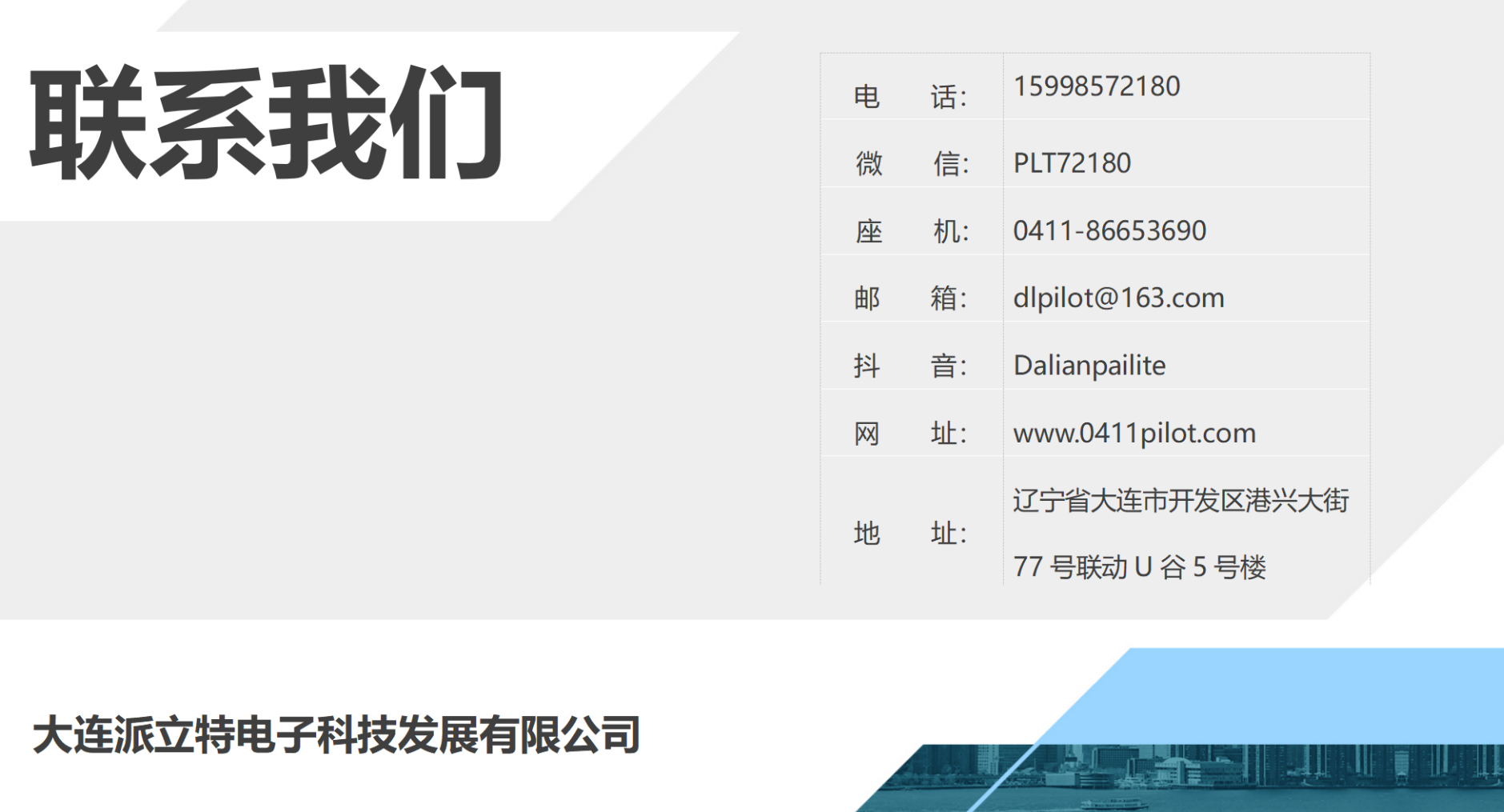 Copyright © 大連派立特電子科技發(fā)展有限公司 版權所有 遼ICP備10200612號-1 網站地圖 全國服務電話:18342687558 傳真: 手機:18342687558 工廠:遼寧省大連市開發(fā)區(qū)海青街道聯東U谷77-5號 公司:大連派立特電子科技發(fā)展有限公司